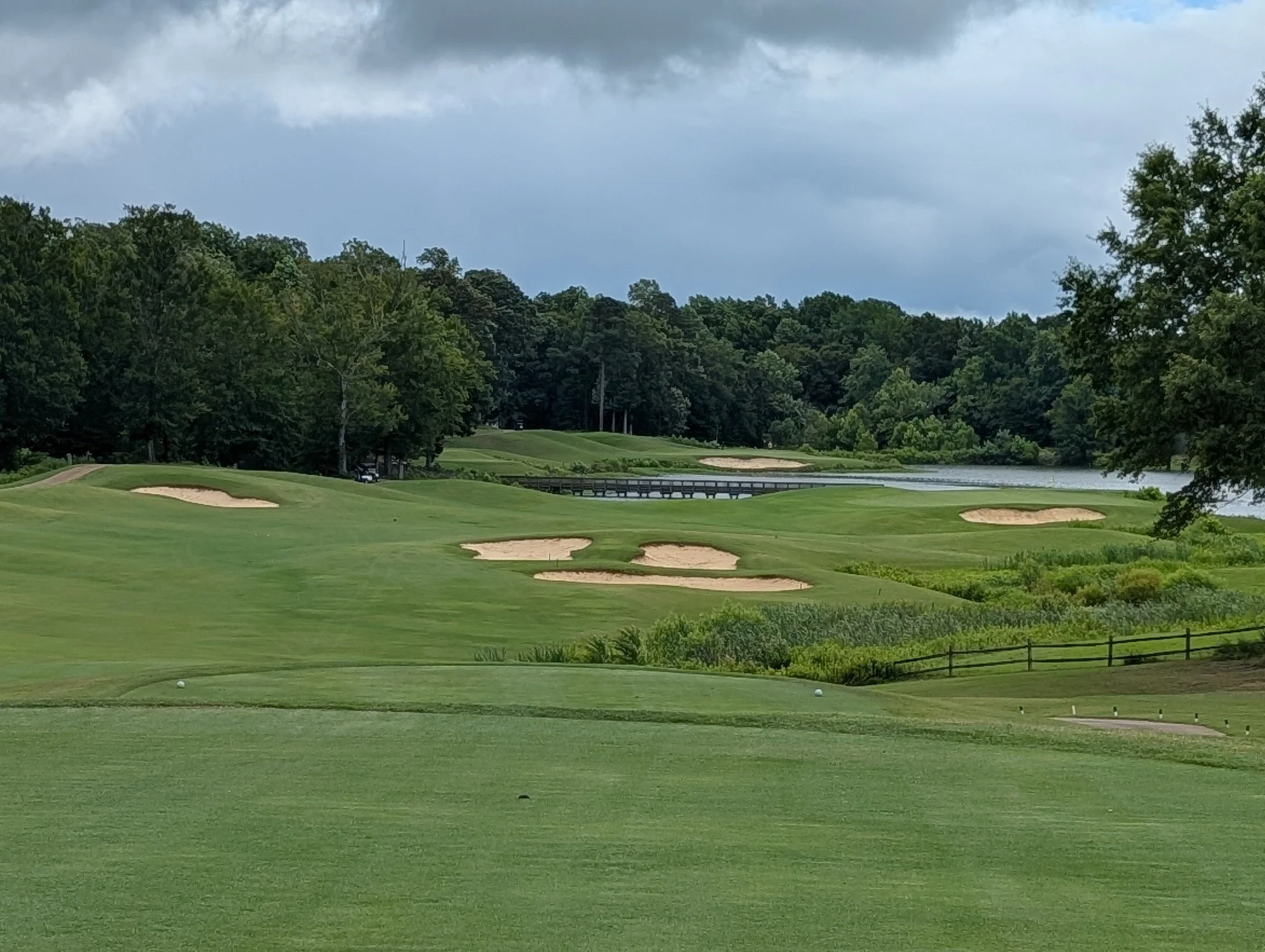 A Mike Stranz design is always quite unique. He used the topography that was there for the layout, creating a course where no two holes are the same or take the same shape. Royal New Kent is a shot makers course, it shows you the shot you need to make, now you need to execute. The fault will be in the shot, not the design. The variety of shapes of greens, their size, undulations, and protective bunkers makes approach shots critical for every hole.